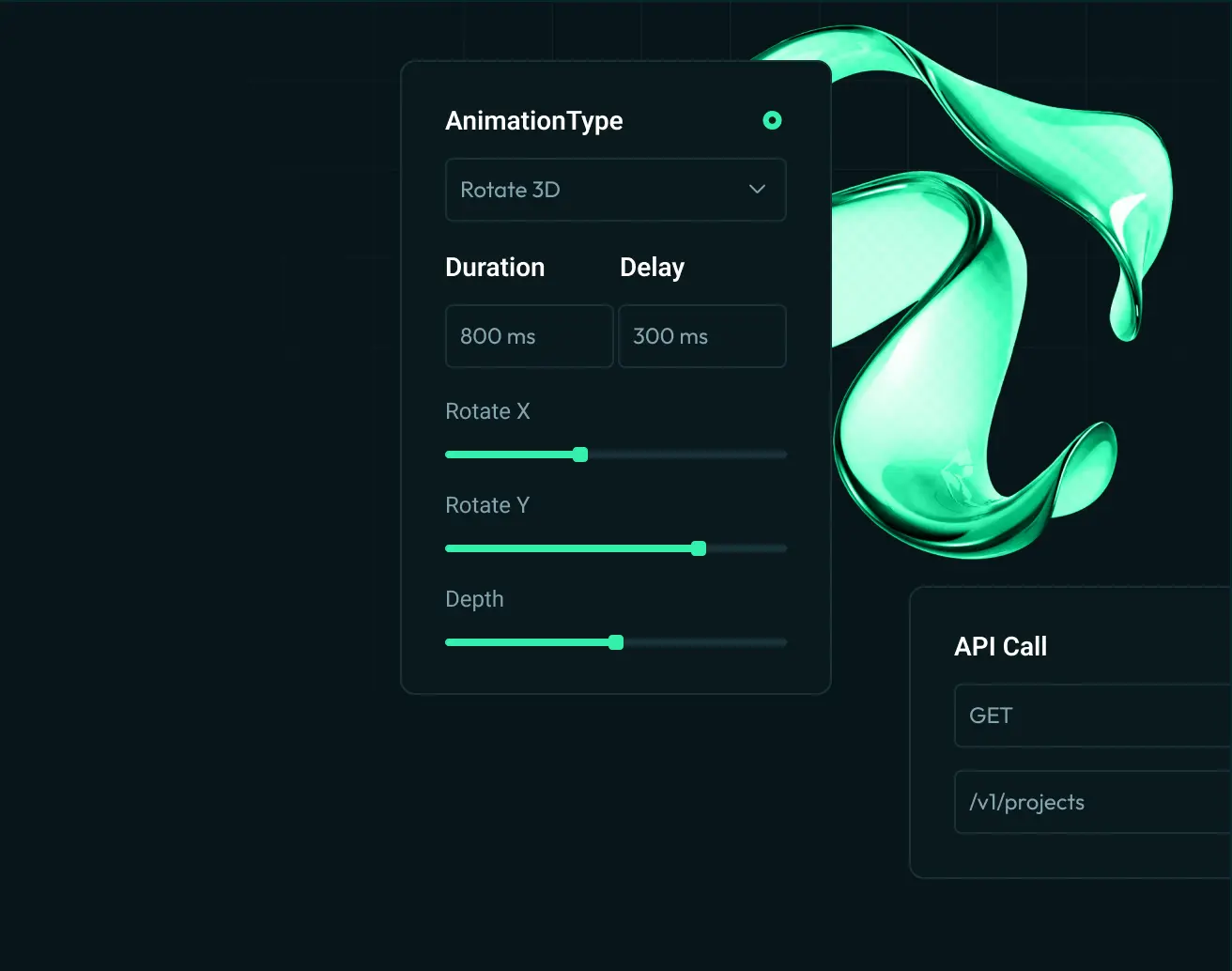 Experiment with 3D elements, motion animations, and API-driven features in a drag-and-drop interface—so you can innovate freely and build complex site without knowledge.